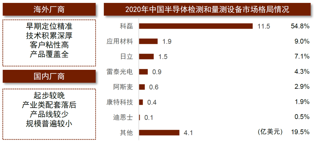 图表:半导体量检测设备行业竞争特点和2020年国内市场格局
