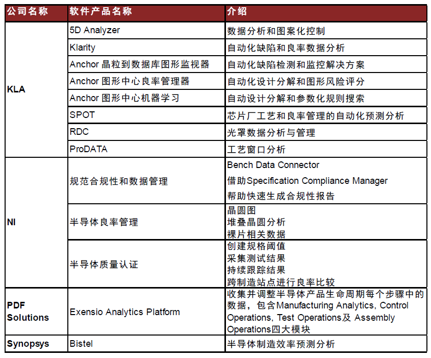 图表:主要半导体制造数据监控和预测体系软件