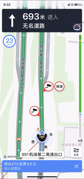 司机打开导航,行中启动记录提示后,有分段计费预估提示,导航结束页则有本次ETC的全程预估收费,包括每段预估费用和总行程预估费用。