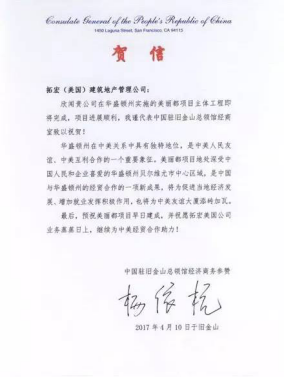 美国时间2017年4月10日,由拓宏集团在美国西雅图投资并与当地知名开发商丹尼尔斯房地产合作开发的美丽都项目封顶仪式圆满落幕。