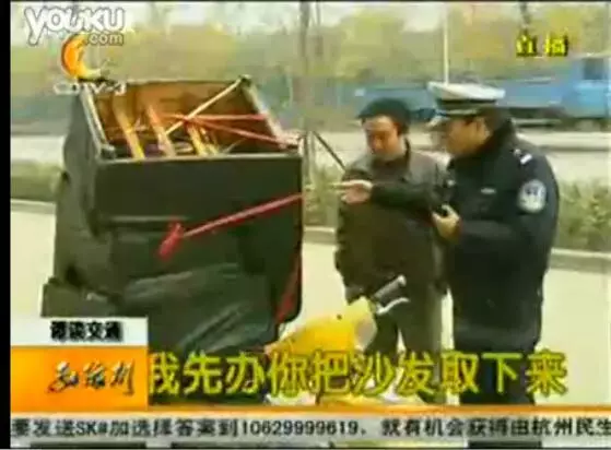 我记得最好笑的一集是有个二手家具店的老板,直接绑了两个沙发在电瓶车上。然后,就被谭警官拦下来了。