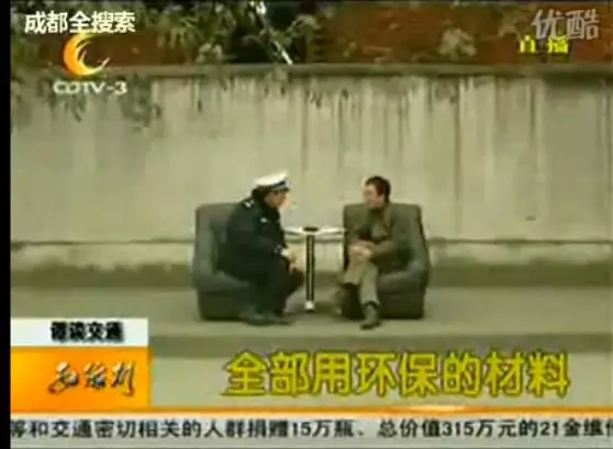 然后,重点来了,他们直接把绑的两个沙发和一个茶几摆在了马路边边上,来了一场高端访谈。