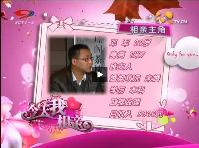 节目一来就要把双方的全部信息都拉出来,包括月收入都写得清清楚楚,每一期都有一个主题,比如“江西帅哥与成都女孩的邂逅”,“爱孩子的父亲寻找能干贤内助”···