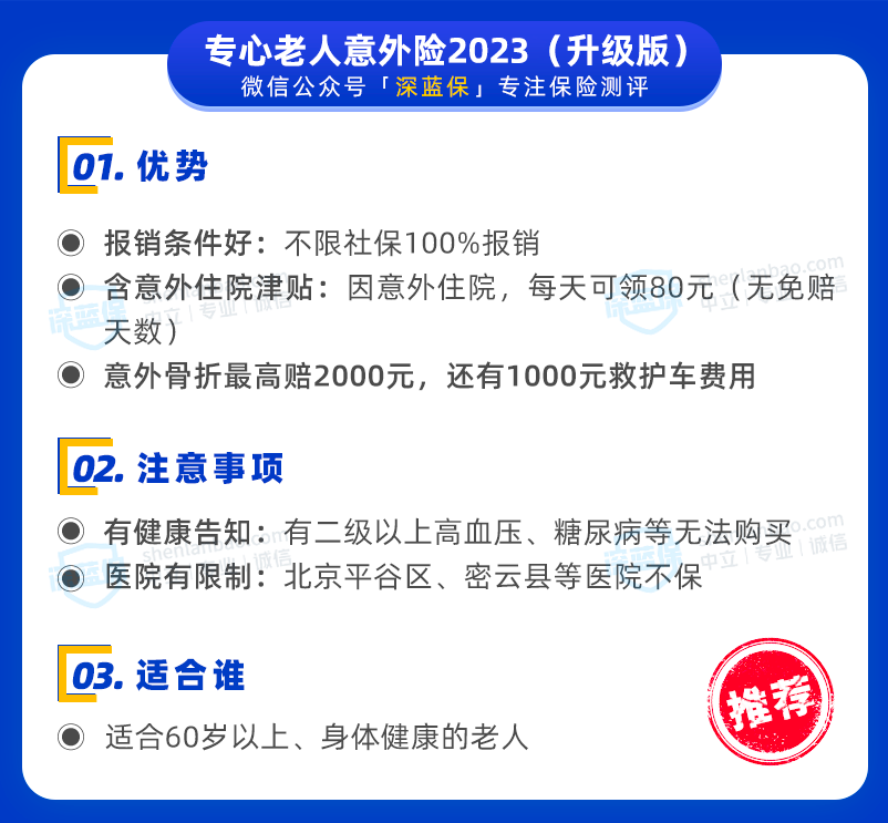 最后是推荐给家里老人买的意外险:专心老人意外险2023(升级版),平安产险出品,每年只要两百多块钱,很划算。