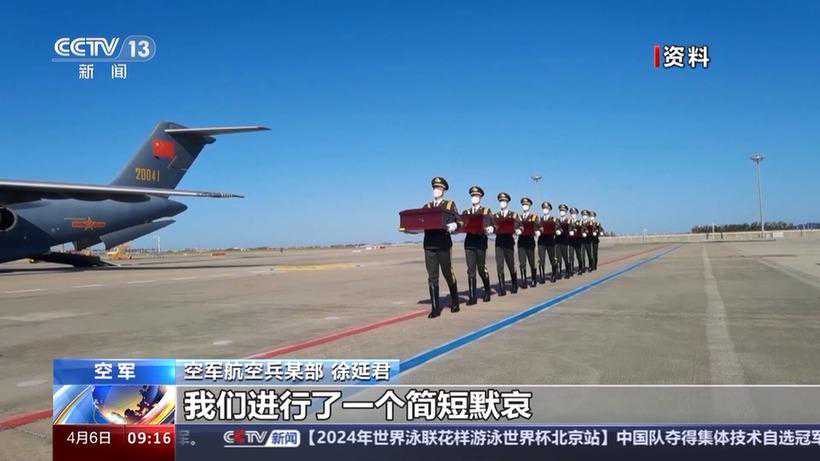 空军航空兵某部徐延君:我们事先经过了很多次的推敲,包括从飞行的计划、航路的申请,然后包括到国外的外交礼仪,包括我们的飞机整体进行了改装改造。当三军仪仗队把烈士遗骸安放好了以后,我们进行了一个简短默哀,并且对棺椁进行了擦拭,那个时候心情就比较沉重了。但是我们作为机组成员来说,还要把自己的分内工作干好,大家又重新协同,快速高效返回祖国。