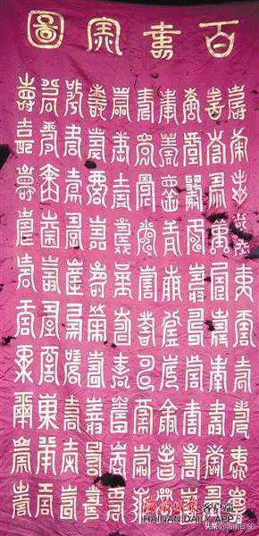 似乎苍天也为寿幛、寿联的境遇落泪。屋外风狂雨骤,屋内灯光昏暗,珍藏上百年的数十幅寿匾、寿幡、寿联、寿鞋、寿帽、百寿宝图以及当年祝寿用的桌簾、椅垫、灯具、烛台等重现真容。这些文化珍宝虽然掩藏百年春秋,但精华难掩,异彩纷呈,灿然夺目。