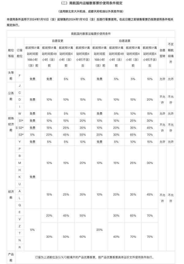 值得一提的是,1月4日,南方航空就发布了关于调整南航客票退改规则的公告。公告称,南航将于2024年1月10日起全面调整客票退改规则。