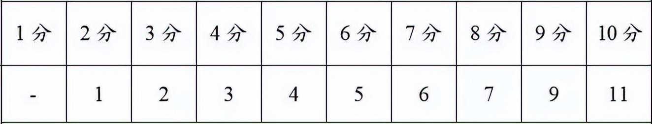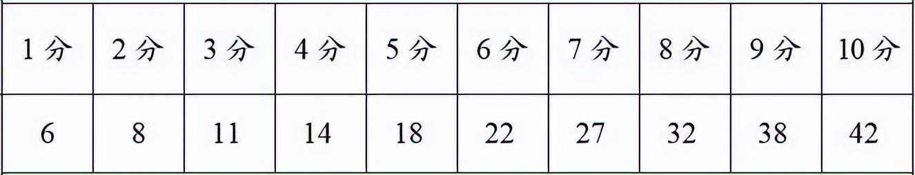 ▲注:得分超出10分的,每递增2次增加1分,最高15分。