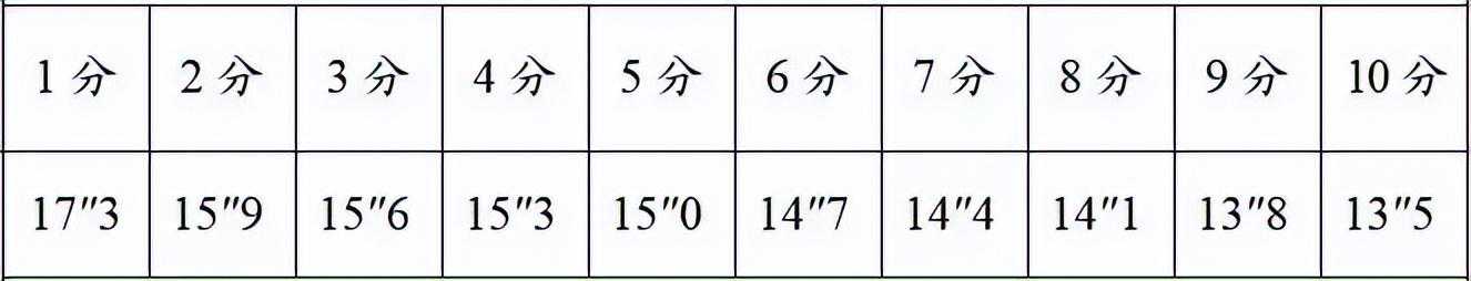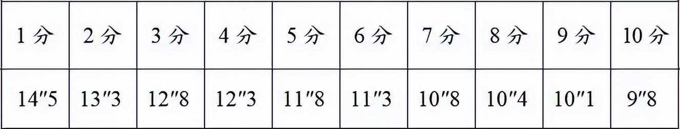 ▲注:得分超出10分的,每递减0.1秒增加1分,最高15分。高原地区按照上述内地标准增加1秒。