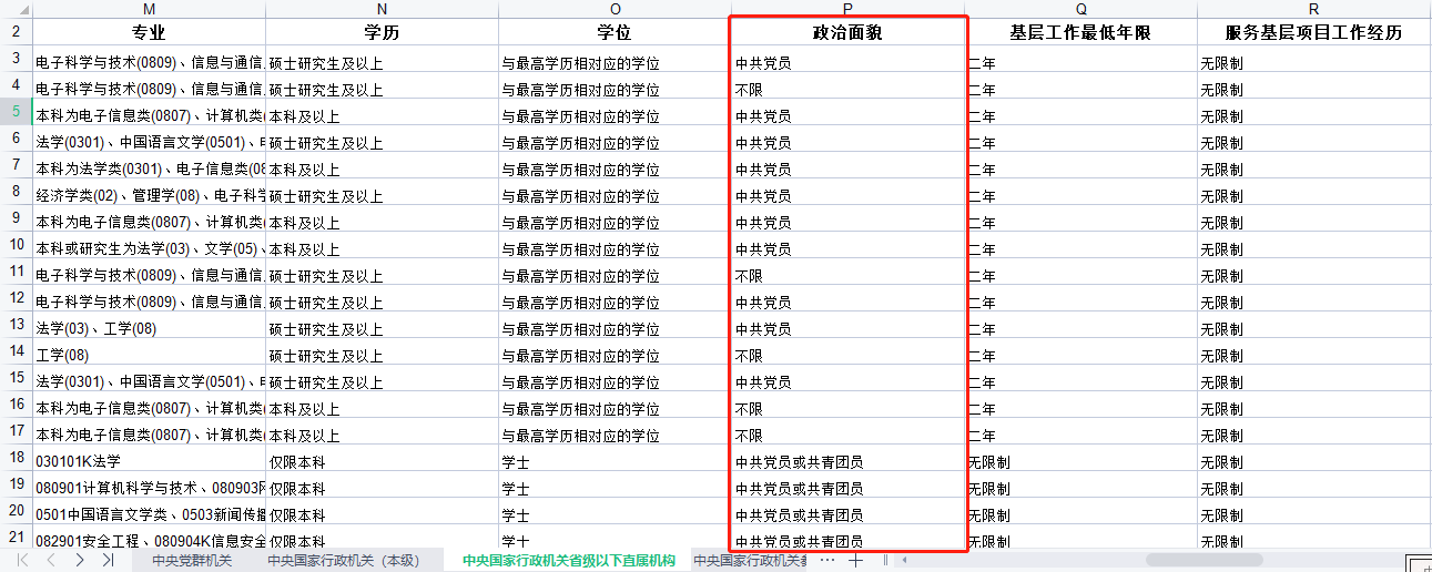 按政治面貌可以说是最简单的,所以可以从这一项入手,政治面貌一般会有3种条件,“不限”、“中共党员”、“中共党员或共青团员”,大家只需要按照自身情况进行选择即可。
