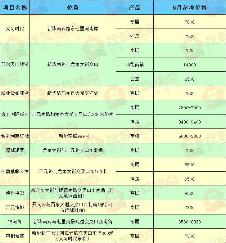通过观察可以知道,邢台桥东南部区域楼盘价格整体较“亲民”,产品性价比较高。高层房价大多在6500元/平米——8500元/平米之间,且大多集中在7500元/平米左右。洋房房源不多,价格7700元/平米——9500元/平米不等。无论是高层房源还是洋房房源相较于其他区域来说都较低。此外,我们也发现,区域内同质产品较多,楼盘之间竞争激烈。