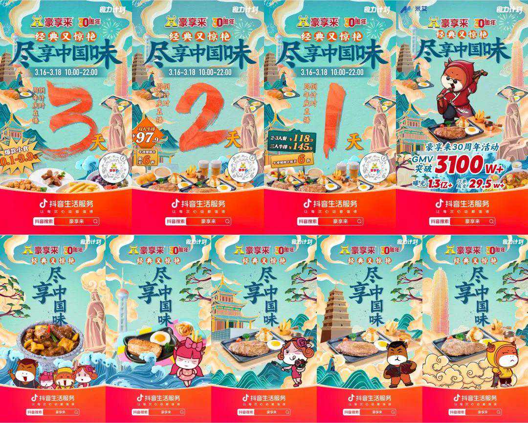 豪享来携手抖音生活服务,通过「食力计划」专案打造,基于品牌的社交属性、亲子属性与年代属性,从优质传播内容,到私域全矩阵铺排,再到周年庆专属货盘的搭建与线下门店分为的布置,最终以线上线下的消费场景闭环。
