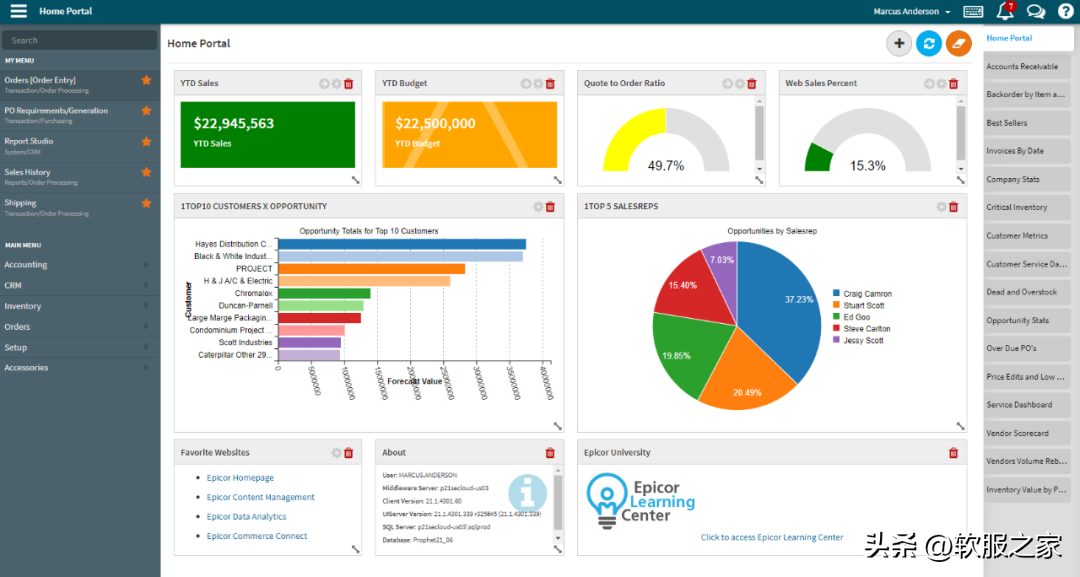 Infor是ERP系统领域的中小型品牌之一,主要优势在于其较高的适应性与灵活性,能够快速适应企业变化。其产品具有良好的用户界面和易用性,并具备强大的数据分析和预测功能。同时,Infor也有针对不同行业的专业解决方案。