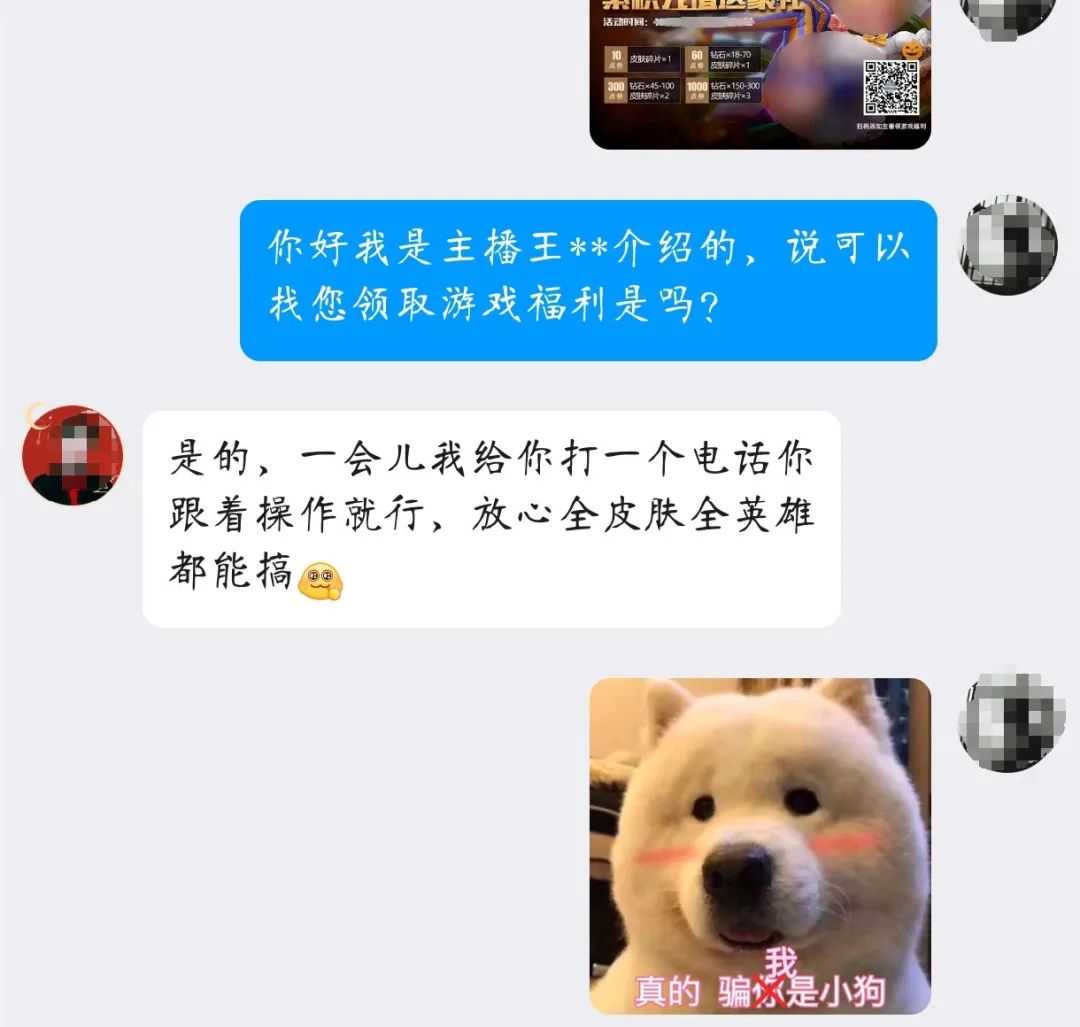 今年1月,甘孜州11岁的小洛在使用妈妈手机看游戏直播时,收到一条免费领取游戏皮肤的私信,随即添加对方为微信好友,并在对方发来的网站中输入自己的游戏信息领取皮肤。