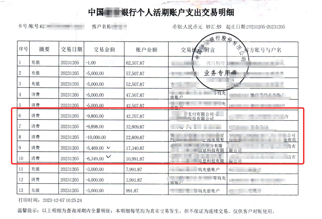 接下来,对方诱导小洛将妈妈银行账户里的两万余元分多笔全部转到指定账户。十分钟后,对方告诉小洛处理成功,不会追究小洛的责任,小洛悬着的心终于“落地”,将手机还给了妈妈。