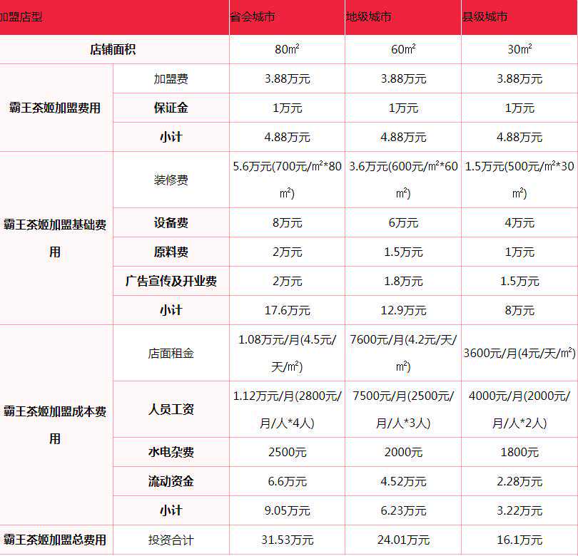 霸王茶姬加盟费: