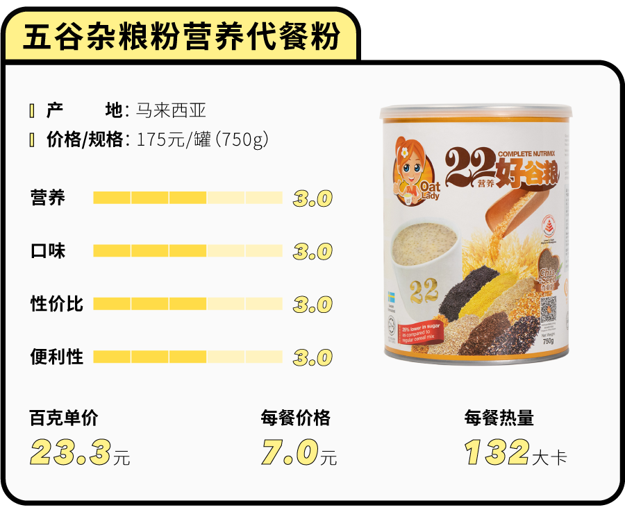 相比国产谷物代餐粉的高性价比,进口产品在价格上面要贵一些。当然,如果味道不错、选材天然健康,也不妨买来换换口味。
