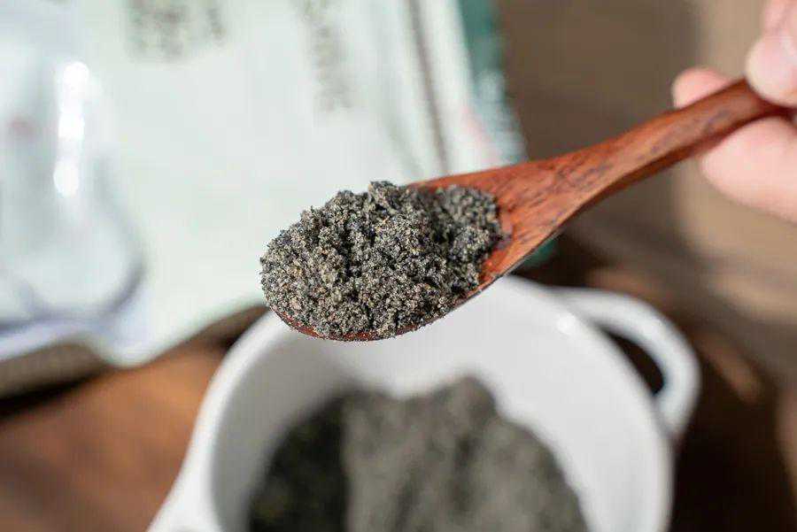 这款代餐,就是黑芝麻本芝麻,毫无添加。磨粉后略微有些油脂渗出,闻起来比完整的芝麻还要香,纯天然的籽种香气太好闻了。