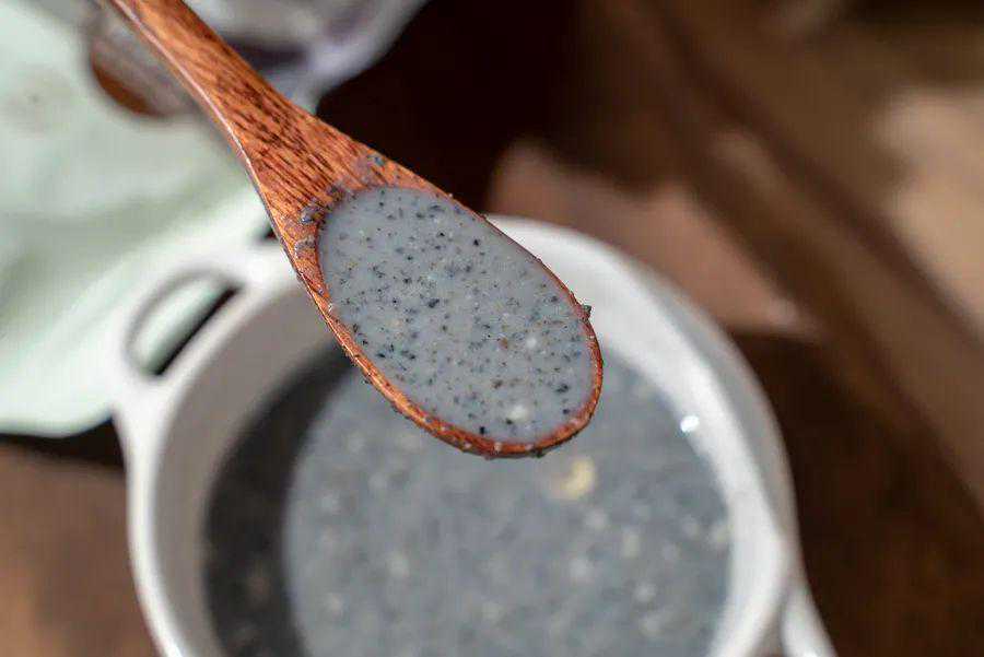 我喜欢芝麻糊的口感,所以会用豆浆粉1:1冲芝麻粉,口感一级棒。芝麻味特别香浓,豆浆的甜奶味刚好和芝麻本身的苦味平衡,我可太爱了。