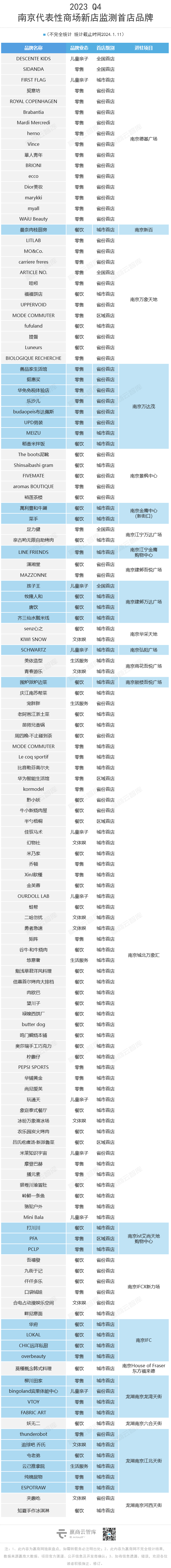 2023Q4南京首店品牌清单