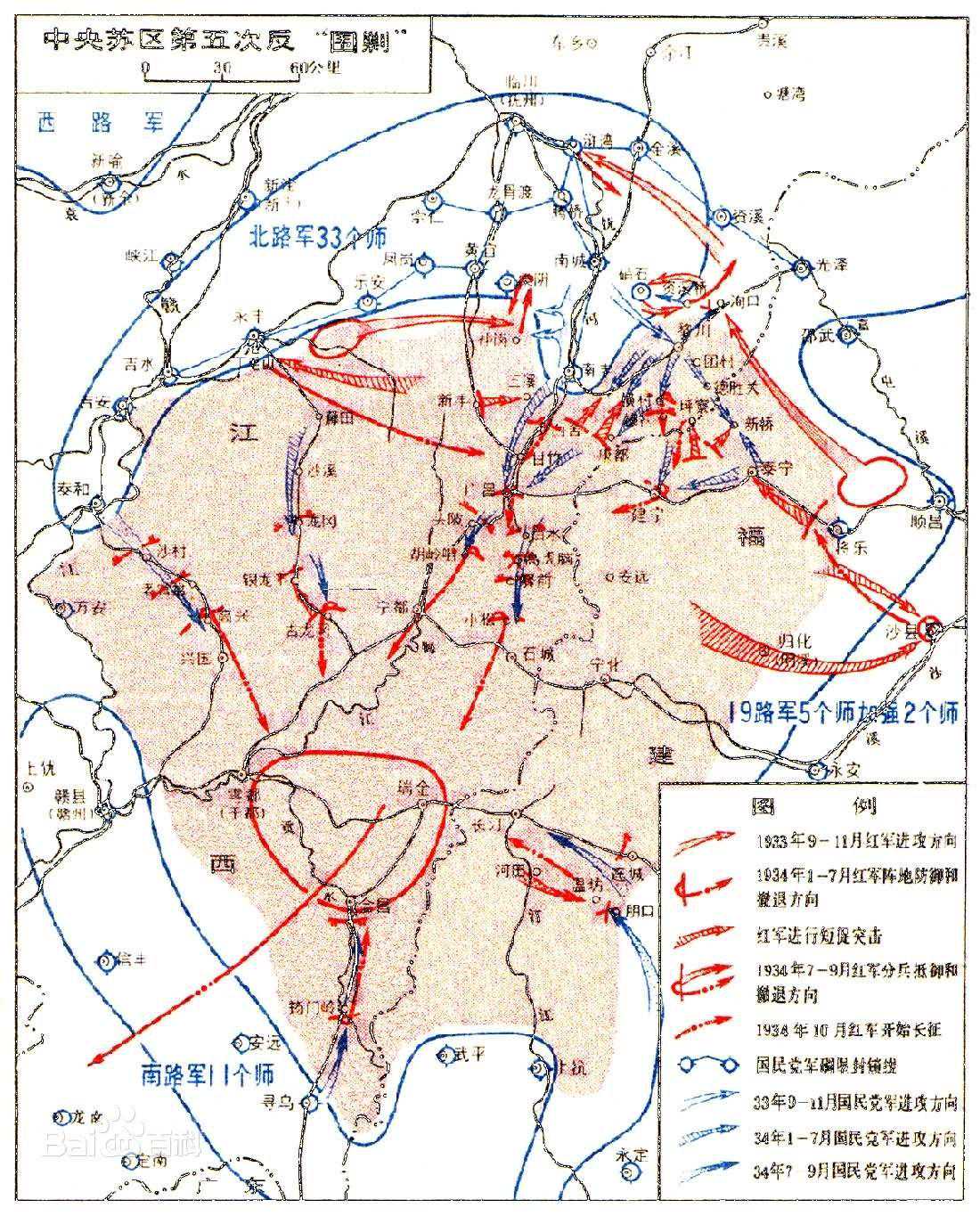 1933年十月,走投无路的蒋介石准备与红军做最后一搏,聚集所有手中所有兵力,总共100万,直扑中央苏区,发动了对由共产党带领的红军的第五次围剿。