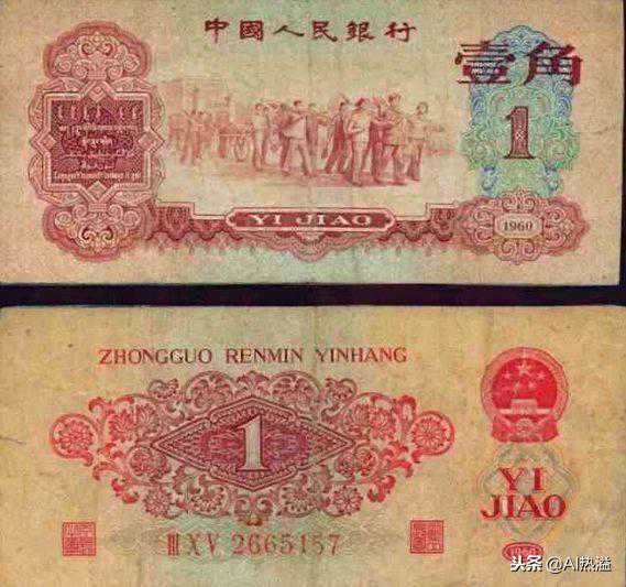 60版枣红一角堪称是第三套人民币中的币王。它是中国唯一使用了千纸正背面双凹印刷的纸币,它的油墨颜料是由工人研制的,永不退色,而在它的流通过程中,因为历史原因早早被收回,一部分还被销毁,所以存世量很少。
