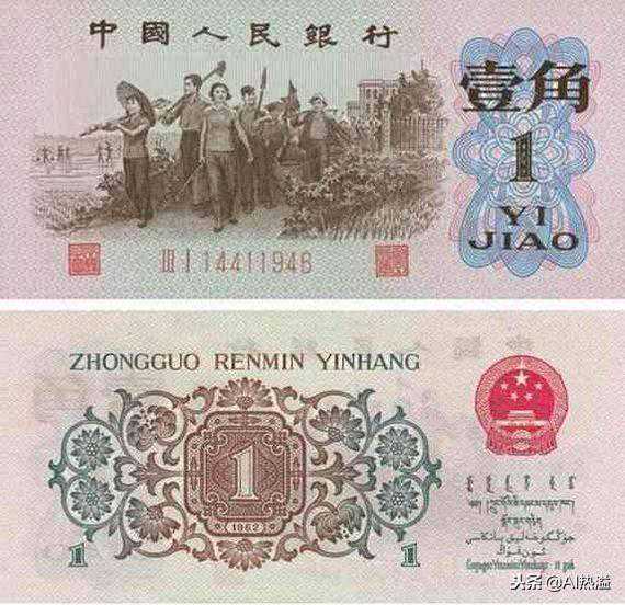 第三套人民币的“枣红一角”券面图案中的人物原因没怎么流通就遭到严苛的回收销毁,存世量骤减。为了挽回“枣红一角”的错误随后发行了“背绿一角”。由于与同套2角纸钞背面颜色同为绿色,在交易过程极易造成混淆,故仅使用了14个月便遭回收,由此成为成为第三套人民币中发行量最少、发行时间最短、存世量最少的“币王”。背绿一角分为带水印和不带水印,而带有五角水印的“背绿一角”更为稀有,被称作是第三套人民币中的票胆,根据资料显示,2013年“背绿一角”的身价已经达到4万多元。(以当时市场价为准)