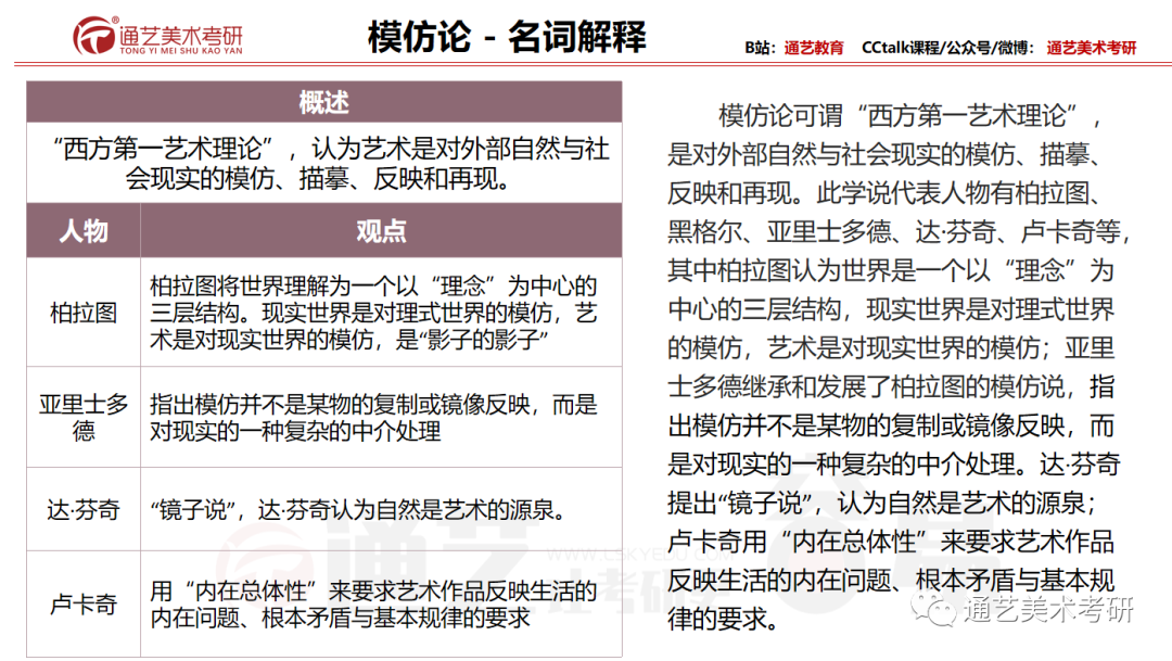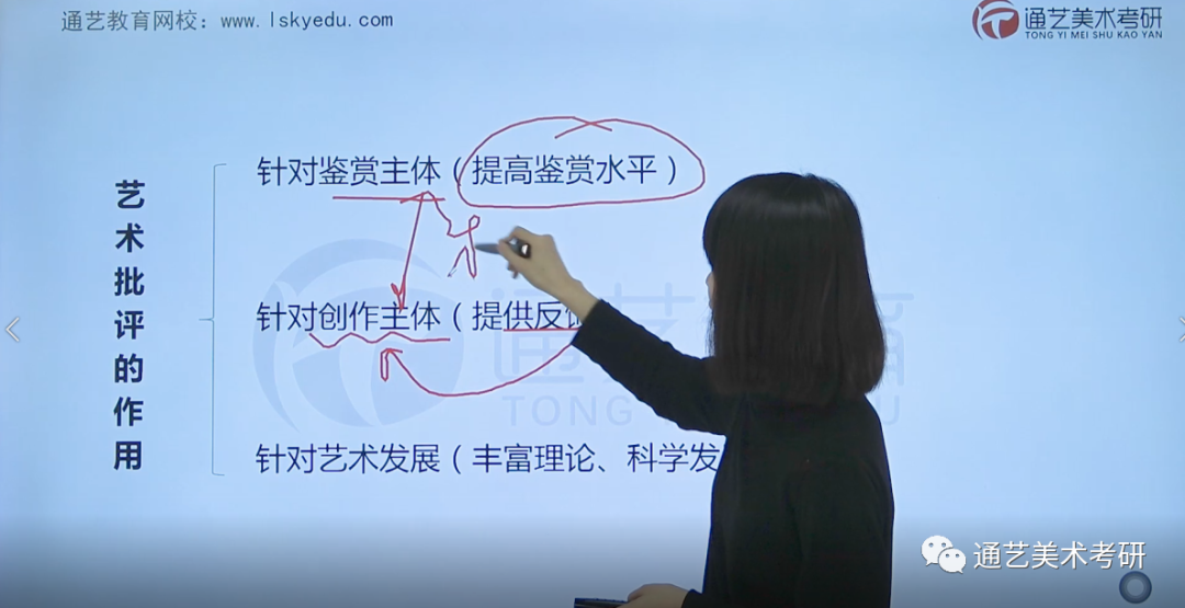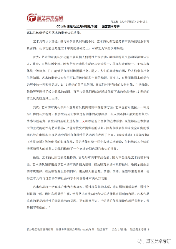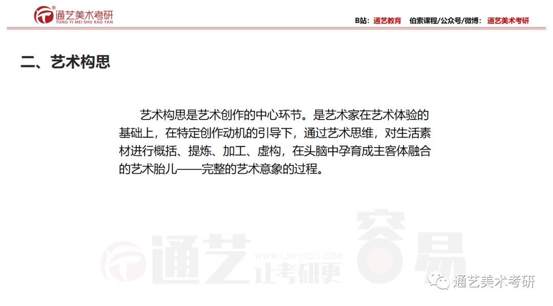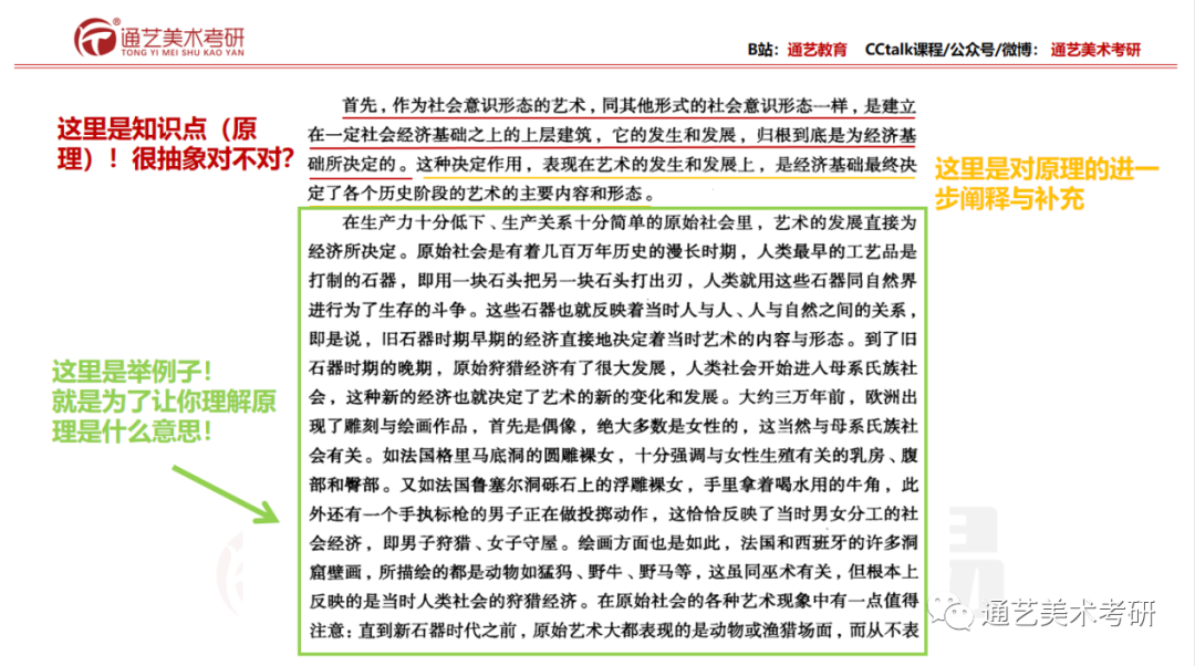 当然,咱们通艺的基础课程的主要教学目标就是让大家全面理解书本内容,并且融入考研趋势、考研真题到课程内容中,让它更有倾向性。通艺每一版本《艺术概论》的基础课皆以理解为主旨,在课堂中用大家熟悉的艺术作品把抽象的知识点讲得生动有趣的同时又不失逻辑性。