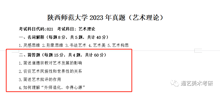 分值通常在10-15之间,个别学校也有20分一道的。简答题一般比较单刀直入,题干信息可以直接确认具体知识点,如简述艺术批评定义及作用、简述艺术与宗教的关系。与名词解释不同,简答题可能涉及多个概念之间的关系,或者单个概念的延展,对答题的逻辑性稍有提高。