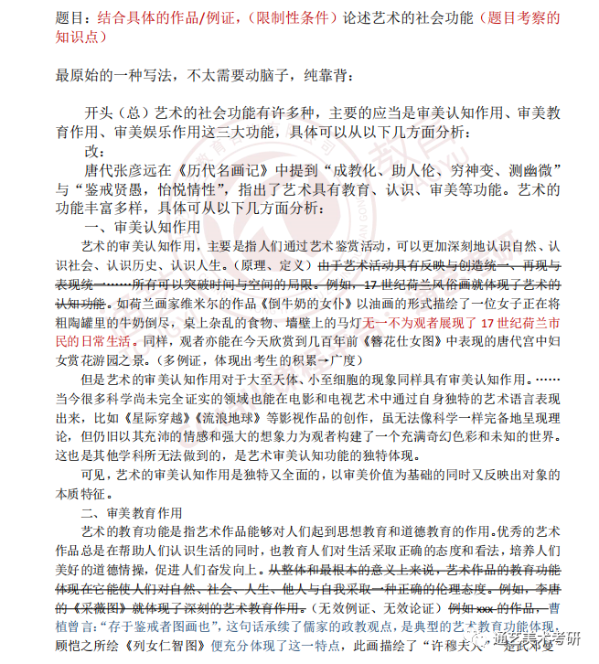 不否认有的同学的确靠背资料考到了这个分数,但是如果抛开压分与否和真题难度来说就是刷流氓,直接背资料只适合题目真的不灵活+全是基础知识点的人。稍微想学好一点的只背资料,做题时碰到不熟悉的题型就很难变通。所以很多人说不看书直接背资料的,到底是对你好还是害你,请想清楚。此外,前文已讲过艺术概论的确是原理+阐释补充+论据,但是教材的编写者都是非常努力想要读者看得懂,所以会举很多生动的例子,想要学懂,还是建议多看原文,比直接背理论要容易上手。