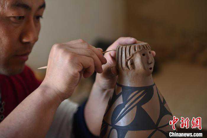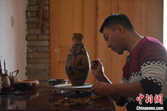 4月11日,甘肃省天水市秦安县康坡村陶艺车间内,非物质文化遗产秦安陶器烧制技艺代表性传承人康晓龙正赶制大地湾文创彩陶。今年34岁的康晓龙也是秦安大地湾艺术彩陶传习工作室彩陶制作负责人,他从采土、拉坯、彩绘、晾晒、烧制等技术一点一点学起,如今已经从事秦安陶器烧制工作十多年。其复制的大地湾代表性“人头型彩陶瓶”等作品,惟妙惟肖、逼真古朴,将秦安悠久深厚的历史文化展现得淋漓尽致。