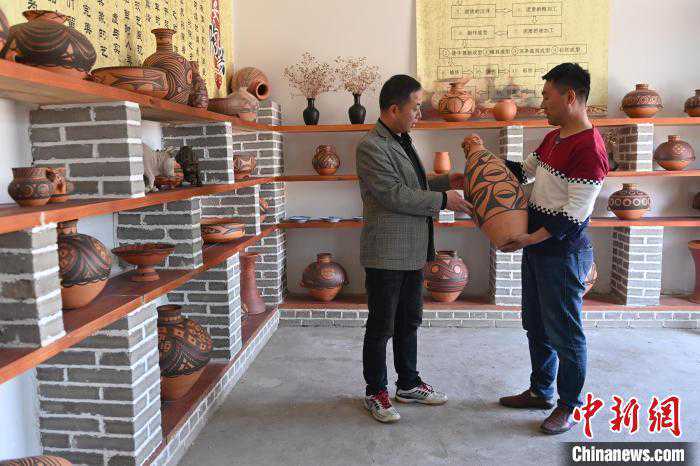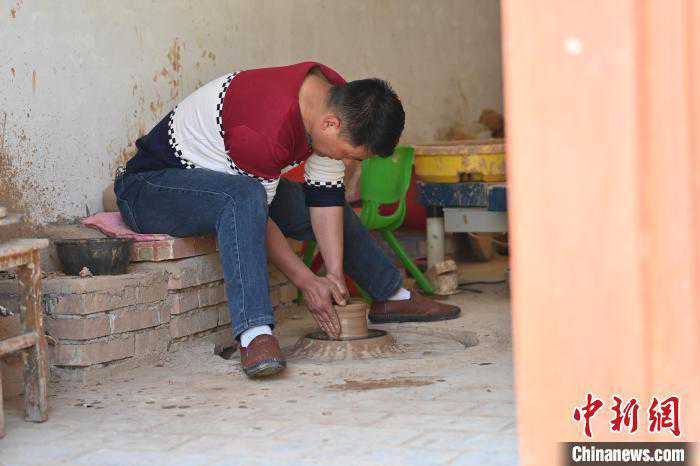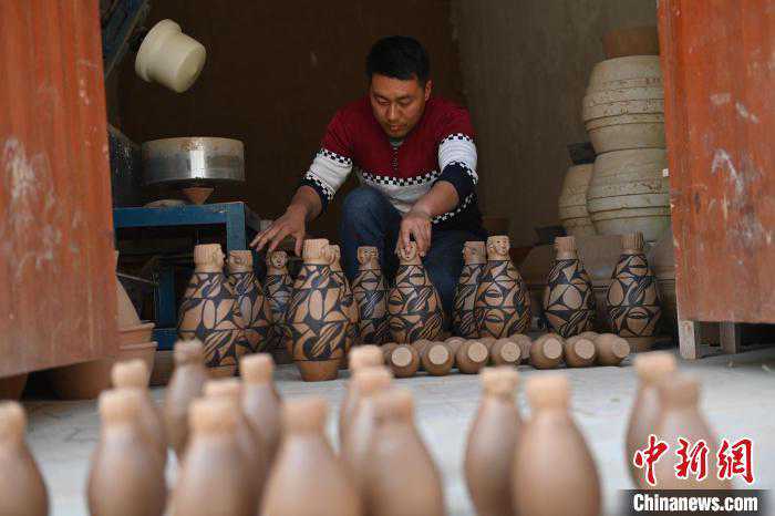 4月11日,甘肃省天水市秦安县康坡村陶艺车间内,非物质文化遗产秦安陶器烧制技艺代表性传承人康晓龙赶制大地湾文创彩陶。李亚龙摄4月11日,甘肃省天水市秦安县康坡村陶艺车间内,非物质文化遗产秦安陶器烧制技......