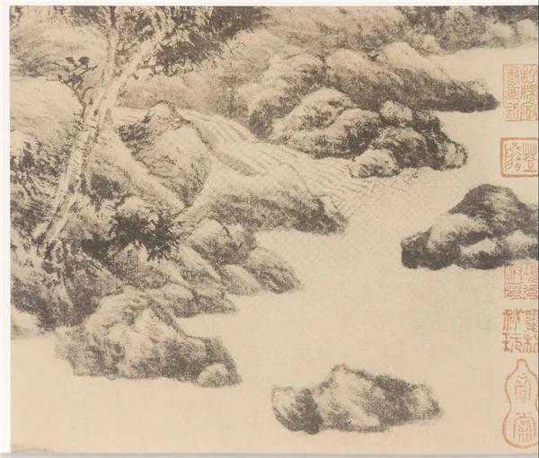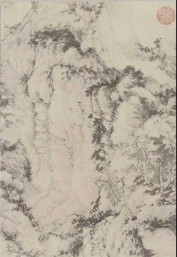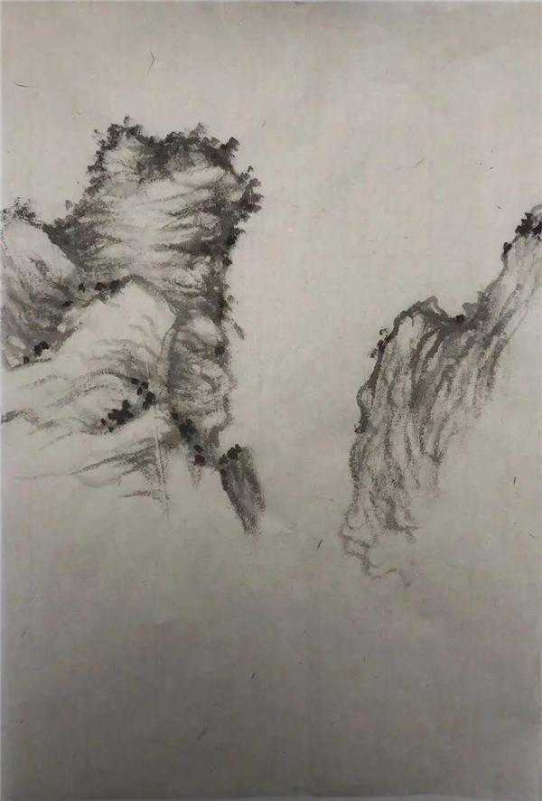 2、以渴成润,用较枯之笔层层积染皴擦,笔墨融合,温润凝净。