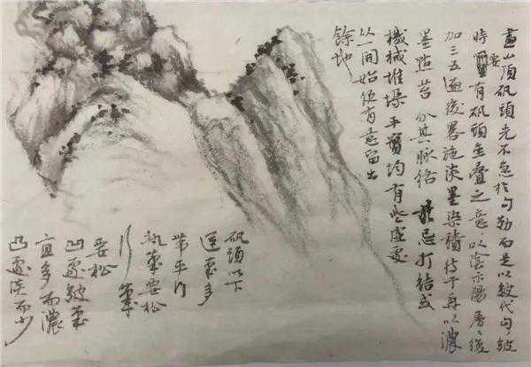 由于王蒙的解索皴颇为繁密,故练笔时要抓住皴法中“笔路”的源头,找出其自上而下的序次,由此来分辩判断其组织结构以及笔墨关系。