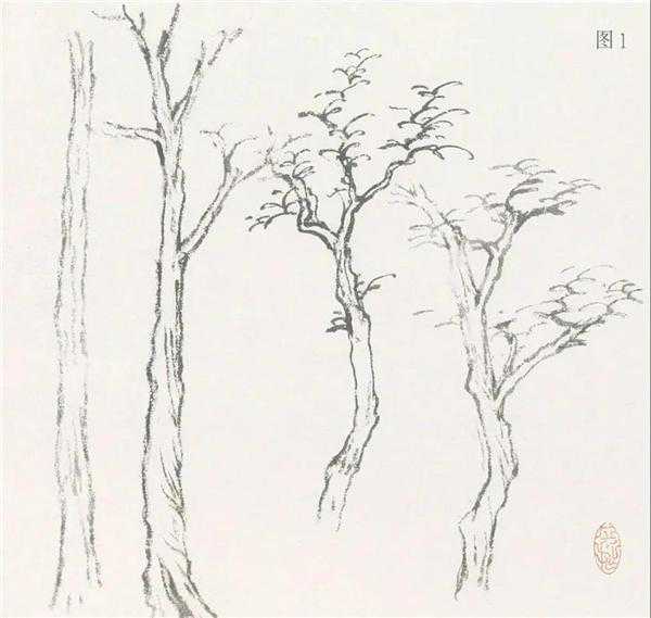 1、树干多用长线条结合短线,笔线与笔线之间要顺势生发。
