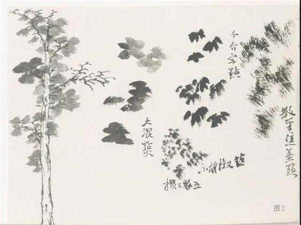 2、多种点叶要注意组织、疏密、松紧、浓淡、枯湿等笔墨关系。用笔要带有写的意味,不要谨勾细描。