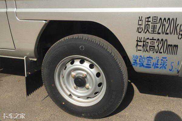 前后采用尺寸为165R13的单胎,车货总质量最大限制在2620kg,意味着货厢最大可以承载接近1吨的货物,已经满足车主日常运输水果、蔬菜的需要。