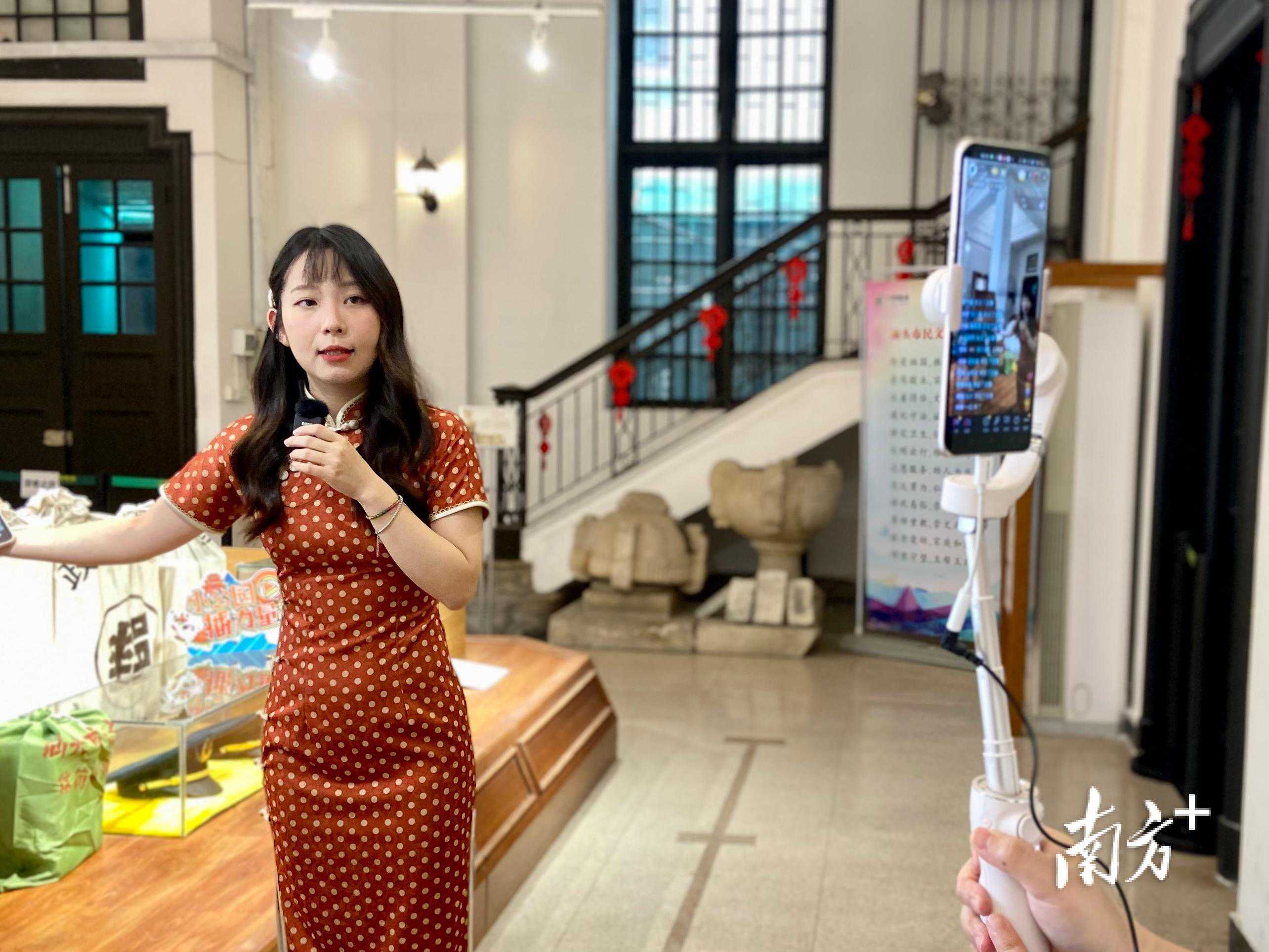 在汕头邮政总局旧址,主播向网友们生动讲述汕头邮政通信发展历史。
