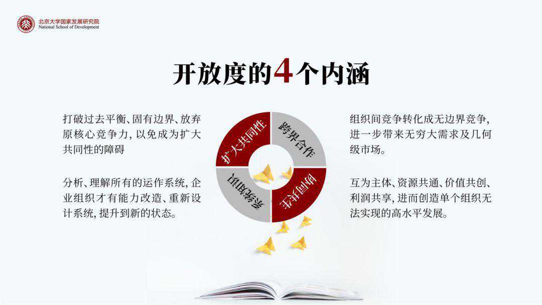 第一个你一定要扩大共同性,我们应该跟这个时代有更好的共同性,你要扩大它。然后我们才有机会做跨界的合作,接着我们会有一个非常好的协同共生,之后我们会拥有系统知识。那么拥有这四样东西的时候,我们才能感受到开放给我们带来的能量。