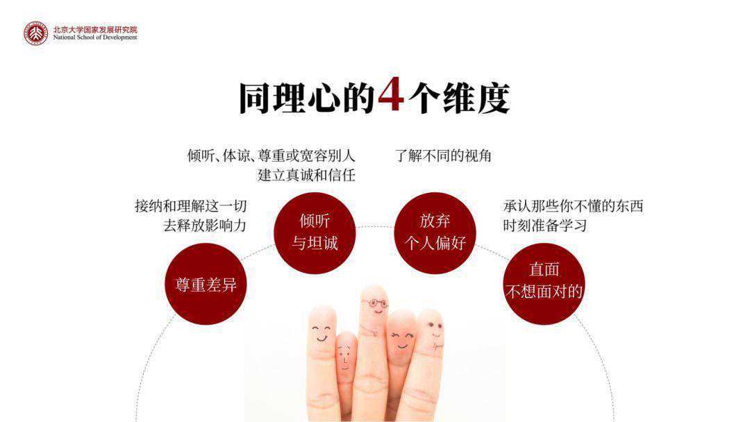 同理心是一个接着下来非常有意义的能力。因为同理心有两个最大的优点:第一个就是可以站在别人的立场,第二个就是它能够建立彼此的信任。大家记住,只有真正的信任,才会带来真正的绩效。