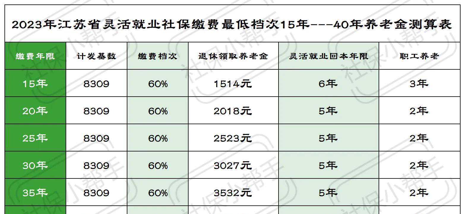 江苏灵活就业社保新政解读:最低缴费档次与不同年限养老金详情