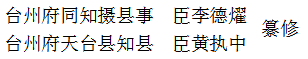 李汇:字推之,覃怀人。绍兴九年,通判州事,因寓家于台。官至朝议大夫。撰《九天仆射祠记》。