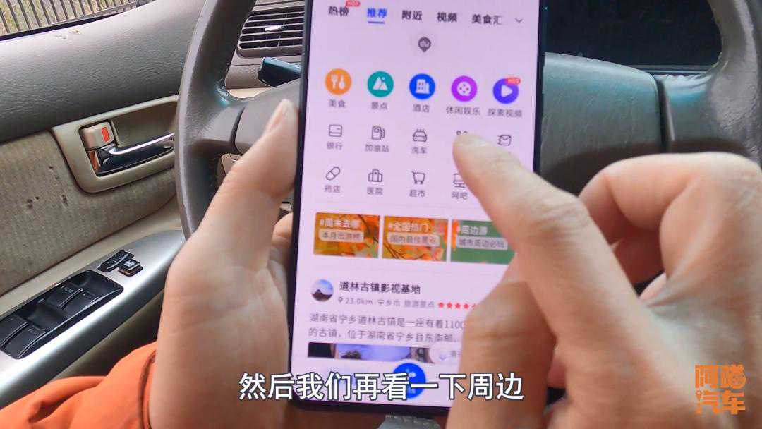 接着进入周边,同样的马上就推荐各种各样的美食、景点、酒店、休闲娱乐,现在地图免费之后,已经不再是当年单纯的一个导航了,而是融入了各种各样的生活信息、商业信息。导航公司通过给其他的服务平台导流,从中间能够收取到一定的流量费,当然可能里面还有其他更多的、更深层次的一些商业因素。