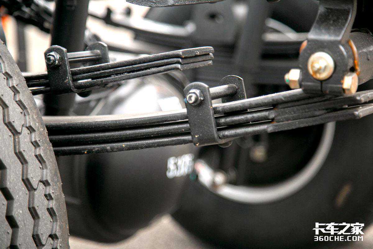 在底盘方面,实拍车型采用了朝阳EZ525系列轮胎,尺寸为7.00R16LT,并且前后桥均可选装铝合金车轮,用于提升操控,降低整车重量。车架采用了最新工艺,和传统的喷漆并不相同,耐腐蚀性得到了提升,管线布局非常规整,前3后3+3的钢板片数主打标载运输,后桥速比为5.375.