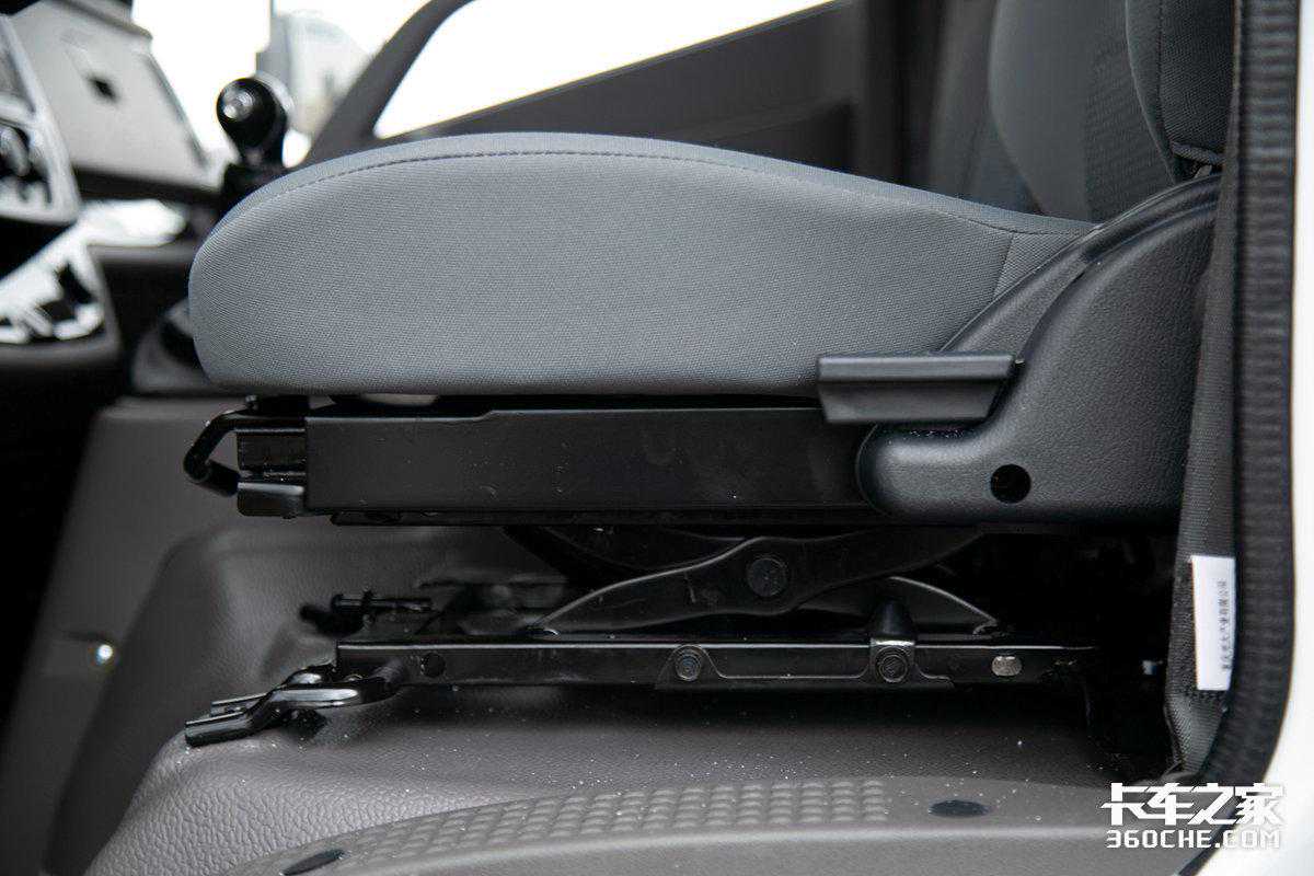 驾驶室的宽度达到了1880mm,即便是同时乘坐三位成年男性也毫不费力,同时主驾驶的座椅坐垫平整,前后调节的幅度较大,得益于优秀的人机工学,卡友可以长时间久坐而不累。并且主驾驶标配了机械减震座椅,可以调节减震阻尼,软硬自如。