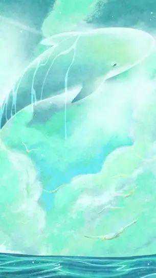 云朵在天边浮游,天空上一个巨大的身影穿过云层。跃起的身影在海面上投下阴影,天空之海的巨鲸伴随着一阵悠扬的歌声,隐匿在云海中。