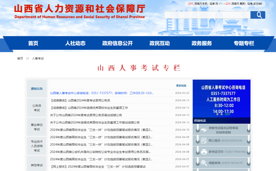 山西省2024年度考试录用公务员笔试阅卷工作已结束,考生可于4月13日0:00后登录山西省人力资源和社会保障厅网站山西人事考试专栏()查询考试成绩。