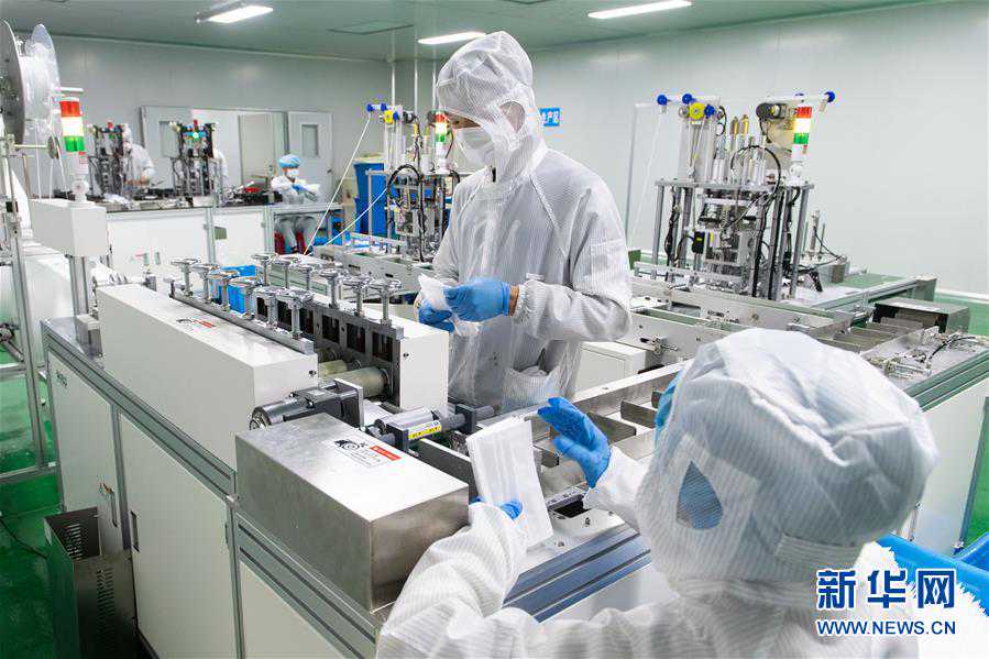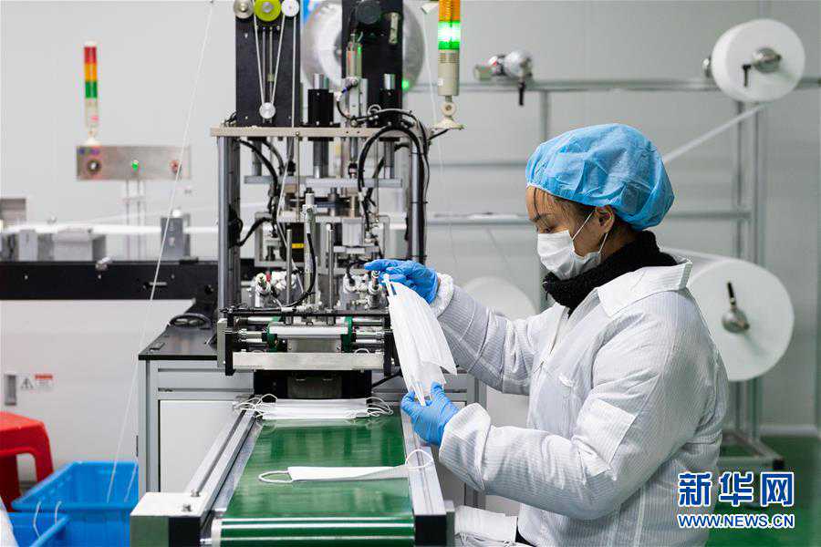 3月8日,在湖南省浏阳市达程医疗科技有限公司口罩车间,工作人员整理口罩。目前,湖南省浏阳市已有十余家企业通过相关部门审批,正式投产生产口罩,目前该市口罩日产量已达100万只。新华社发(陈思汗摄)