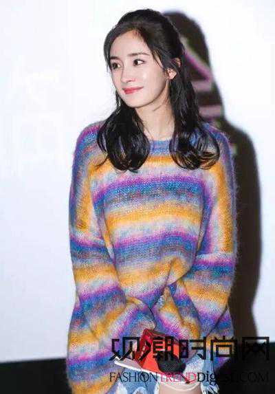 杨幂身穿这件粗横条纹马海毛的毛衣,宽松的款式看起来非常暖和,当然略丰满的女生还是少穿马海毛的毛衣,本身就容易显得臃肿,不过你是清瘦女生,倒是建议这样搭配,营造出丰盈效果很棒!