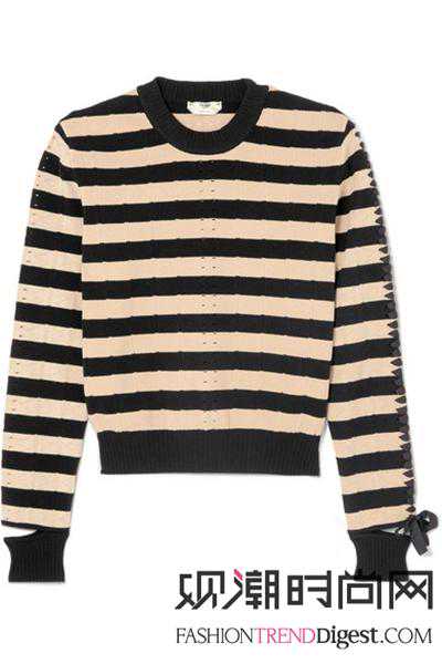 GUCCI带缀饰条纹羊毛混纺毛衣